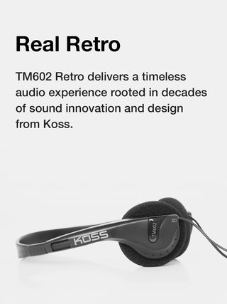 The Koss TM602 Retro On-Ear Headphone delivers a timeless audio experience inspired by the bold style and effortless cool of 1990s aesthetics. Enjoy spacious, detailed high-fidelity sound in a durable, ultra-lightweight design built for everyday listening, perfect for pairing with portable CD players, cassette tape players, and modern audio gear.